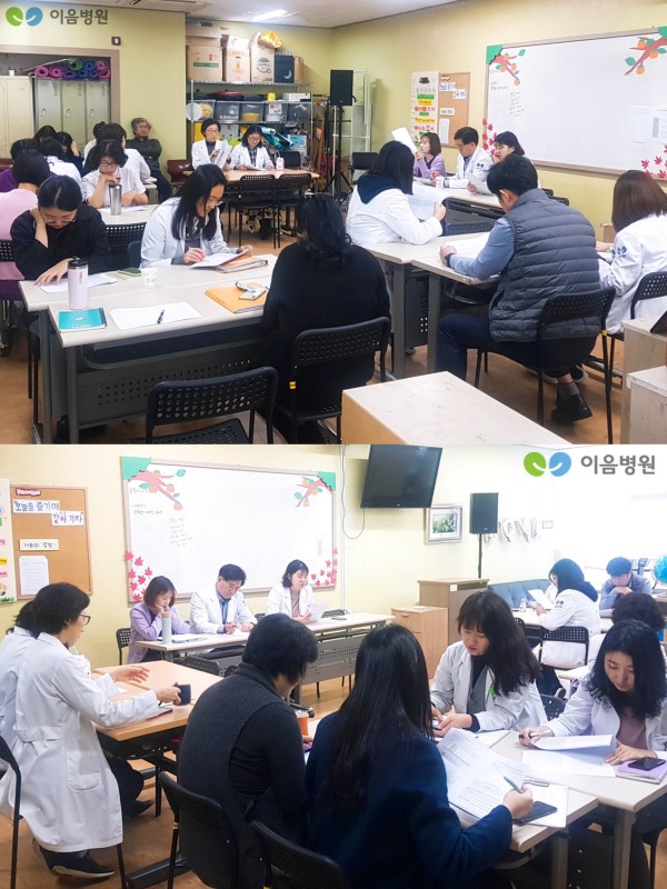 전체 치료진이 모여 환자분께 제공할 더 나은 치료를 위해 치료계획을 상의하는 시간을 가졌습니다.