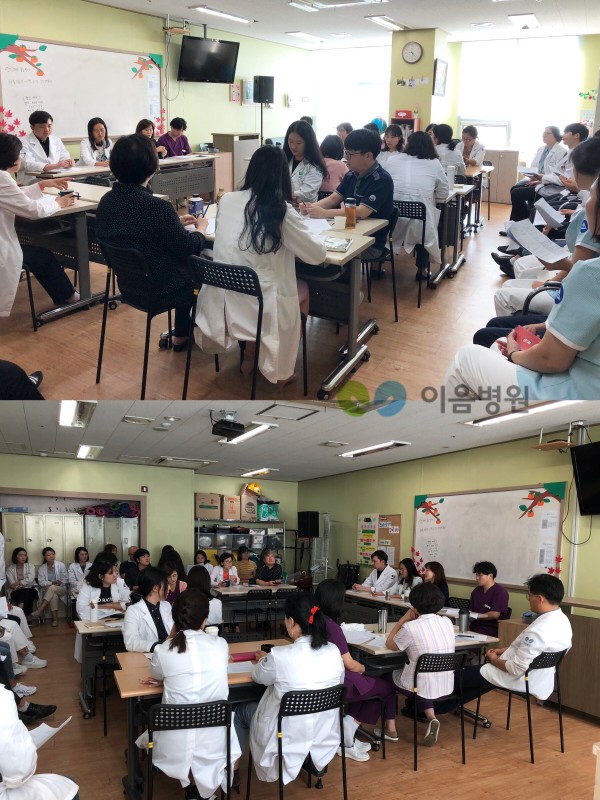 환자분께 제공할 더 나은 치료를 위해 전체 치료진이 모여 치료계획을 상의하는 시간을 가졌습니다.