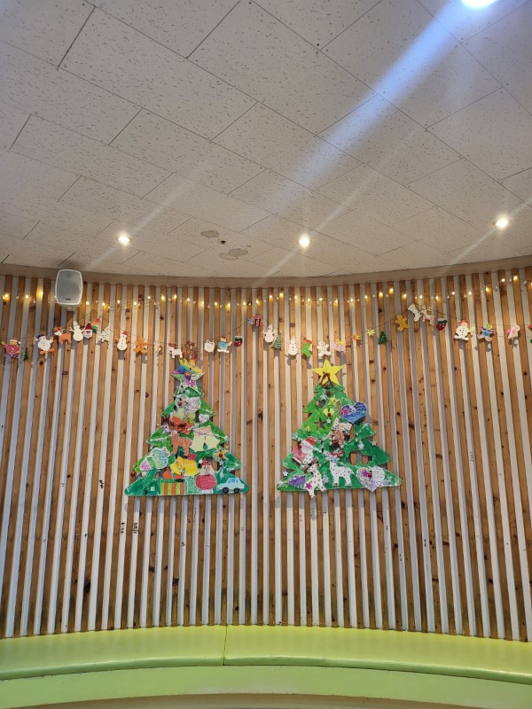 환우분들의 새해소망을 적은 카드를 가랜드로 만들어