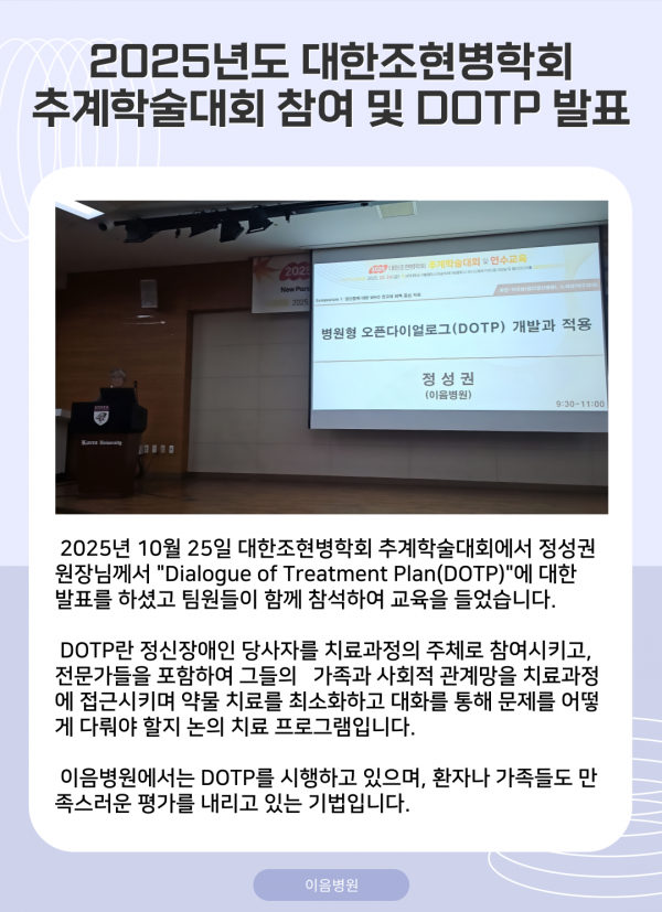 [회복이음팀] 대한조현병학회 추계학술대회 참석 및 DOTP 발표